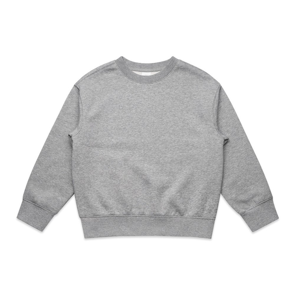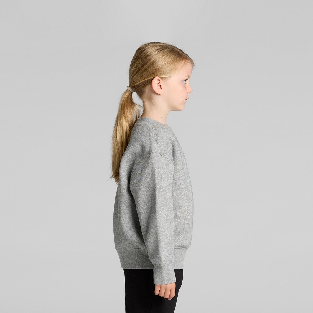 KIDS RELAX CREW 3034 Fit: Relaxed, Fabric: Mid weight, 320 GSM, 80% cotton, 20% recycled polyester fleece, Cotton facing on fleece, Construction: Rib neck cuffs and hem, drop shoulders, boxy fit, Tear-out AS Colour label, Saving approx. 4.5 500ml plastic bottles from landfill, Embellishment: Suited for screen printing, embroidery, DTG & heat pressing