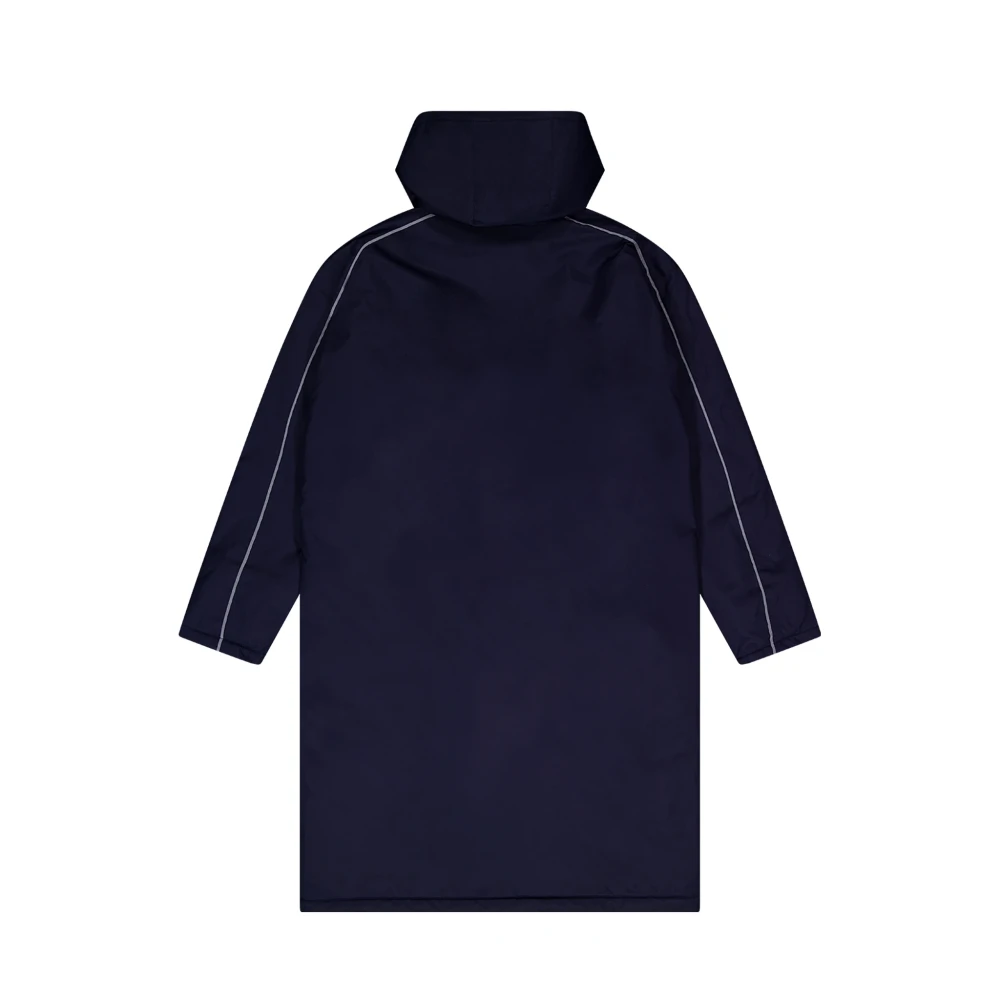 Sideline Jacket A knee length classic for those on the sidelines waiting to play, watching play or just finished playing. Built for athletes and those who watch them. Heavyweight nylon outer, 8000mm water resistance- Knee-length with full fleece lining- Zip and dome front- Reflective piping- Zip-off hood (lined)- Draft-stopping sleeve cuffs- Inside chest pocket- Embroidery access